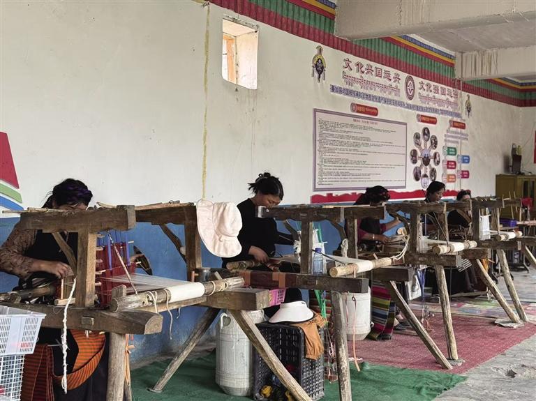 時(shí)光回溯到2002年,嘎日與格桑創(chuàng)立合作社時(shí),僅靠12名村民手工編織傳統(tǒng)邦典,年銷售額不足10萬(wàn)元?!澳菚r(shí)候連染料錢都要精打細(xì)算?!备氯栈貞浀?。2011年格桑去世后,13歲起就跟著母親學(xué)藝的旦增卓嘎接過(guò)重?fù)?dān)——合作社對(duì)她而言,是童年的記憶、是父母的心血,更是她的一方天地。