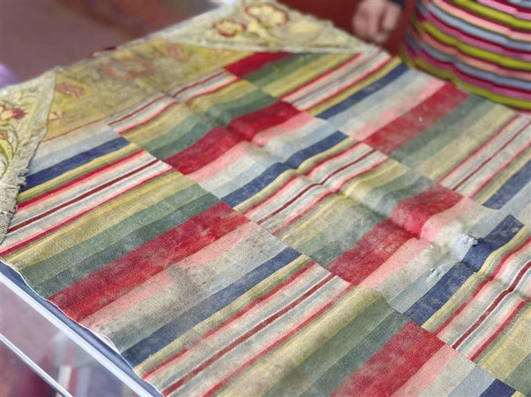 “年輕人喜歡邦典的色彩,但傳統(tǒng)圍裙的使用場(chǎng)景太少了。”旦增卓嘎開(kāi)始嘗試“文化+設(shè)計(jì)”的跨界融合。她將邦典的彩虹條紋融入抱枕、手機(jī)殼,把傳統(tǒng)紋樣轉(zhuǎn)化為現(xiàn)代服飾的裝飾元素?!拔覀儾粌H賣圍裙,更在傳遞藏文化的生活美學(xué)。”旦增卓嘎在展廳內(nèi)介紹著傳統(tǒng)邦典和新型邦典的圖樣——從高端定制到平價(jià)文創(chuàng)小物,不同價(jià)位的產(chǎn)品覆蓋了國(guó)內(nèi)外不同消費(fèi)群體。