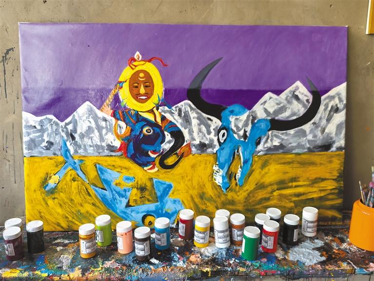 近年來,白瑪次仁背著他的畫作跑到拉脫維亞、西班牙、日本各地巡展?!拔鞑鼗蛘呶?,很榮幸能以這種方式被大家認識和接受?!?/p>