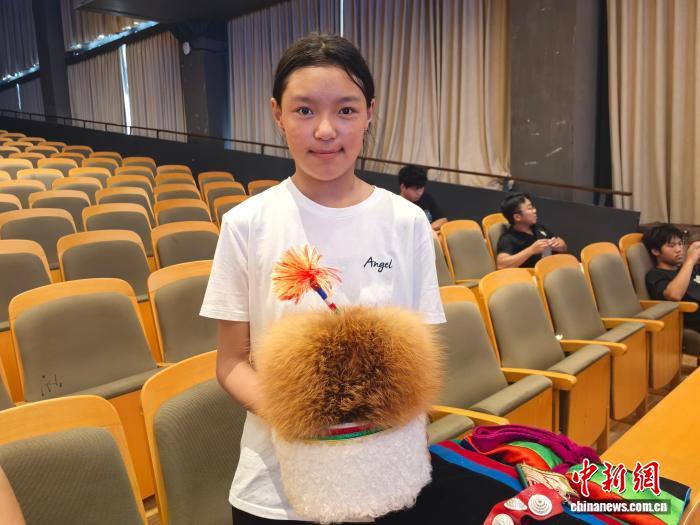 “老師,我要不要戴著這頂天線帽?”要接受采訪時(shí),瓊措吉特意拿出來自家鄉(xiāng)西藏那曲市多安縣的國(guó)家級(jí)非物質(zhì)文化遺產(chǎn)“天線帽”——因帽子上豎有一根類似天線的條形狀彩線編織物而得名。