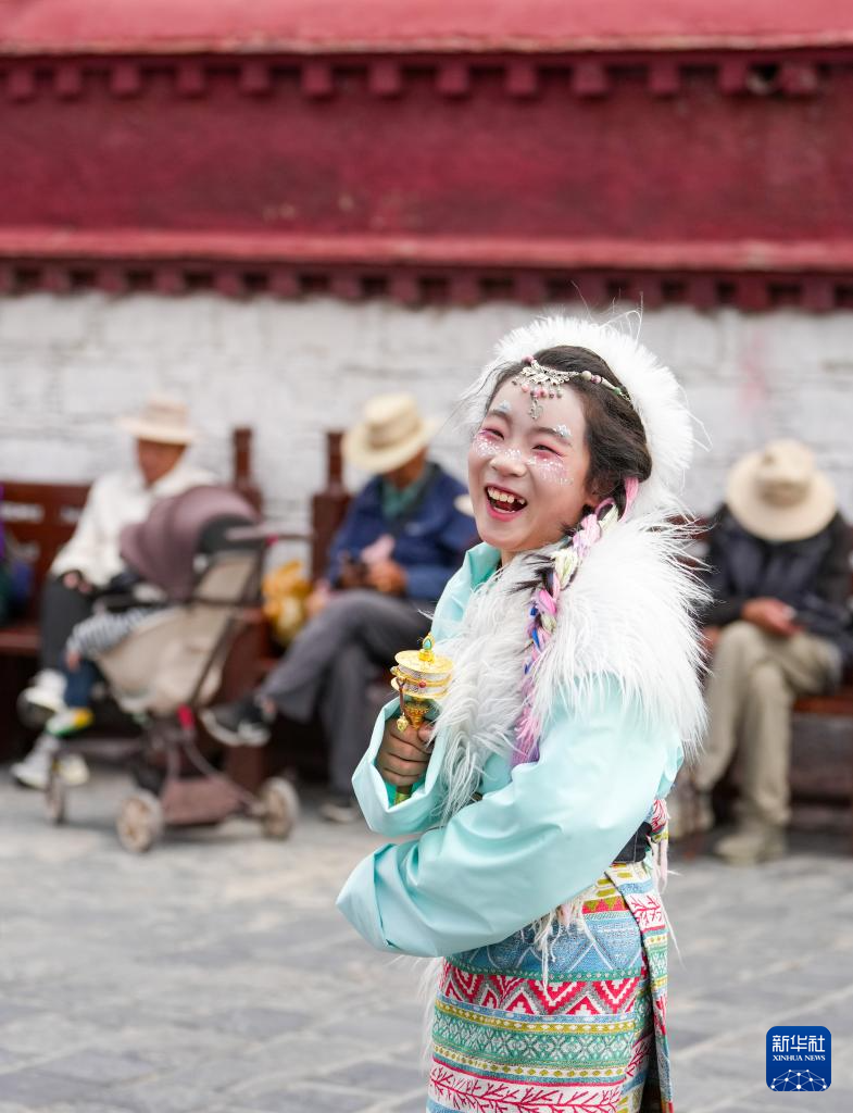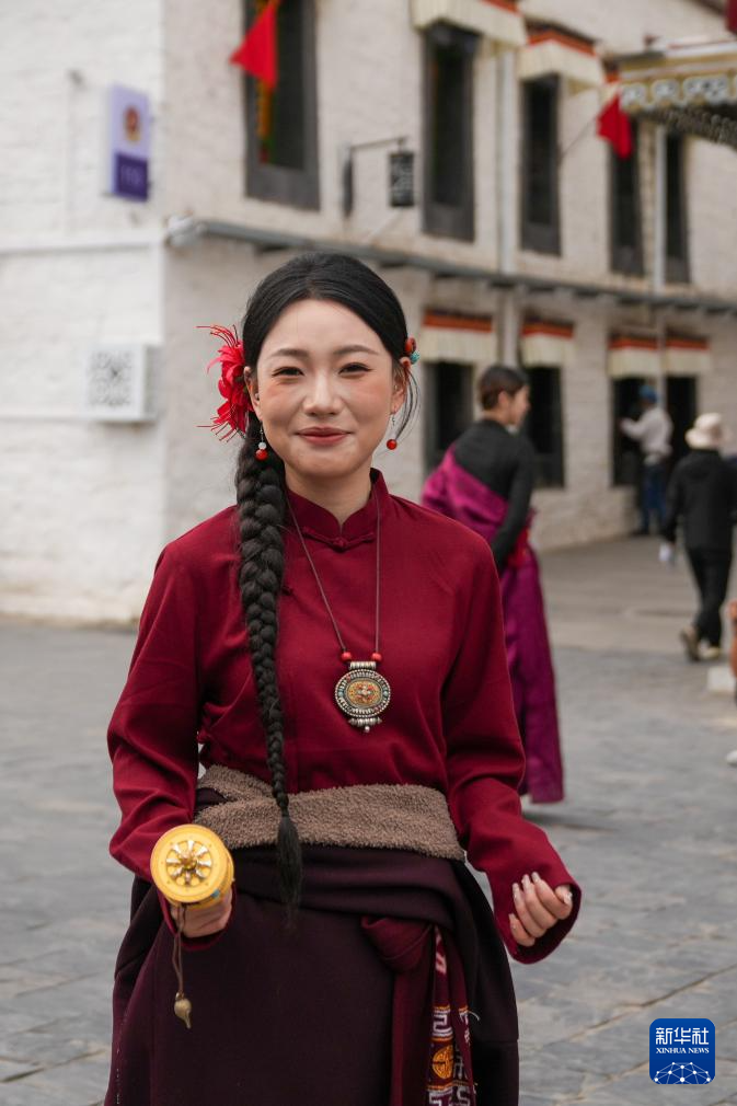 8月19日,游客在拉薩老城區(qū)身著藏裝旅拍。新華社記者 晉美多吉 攝