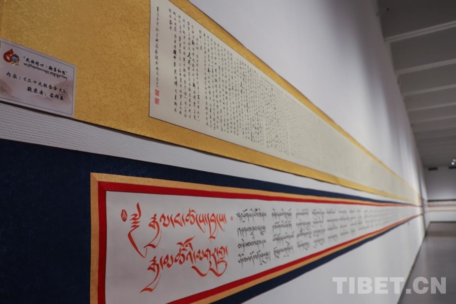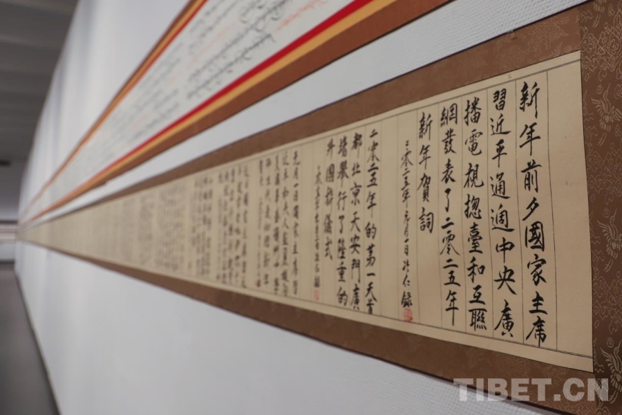 中國(guó)西藏網(wǎng)訊 近日,由中共林芝市委員會(huì)宣傳部、西藏書(shū)法家協(xié)會(huì)主辦的“民族同心·翰墨和鳴”漢藏書(shū)法長(zhǎng)卷作品藝術(shù)展正在西藏美術(shù)館展出。展覽面向市民開(kāi)放,將展出至1月底。