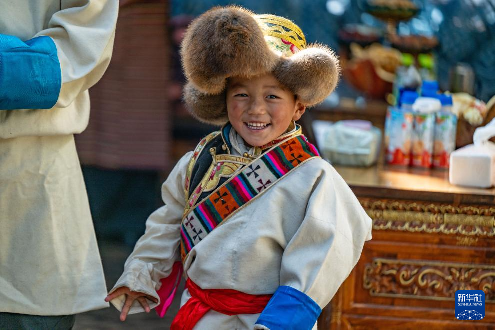 這是日喀則市桑珠孜區(qū)聶日雄鄉(xiāng)楚松村穿上盛裝過新年的小朋友(1月20日攝)。新華社發(fā)(旦增努布 攝)