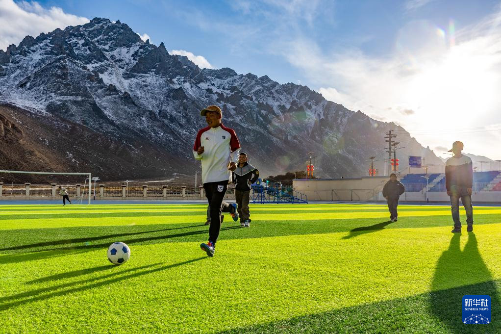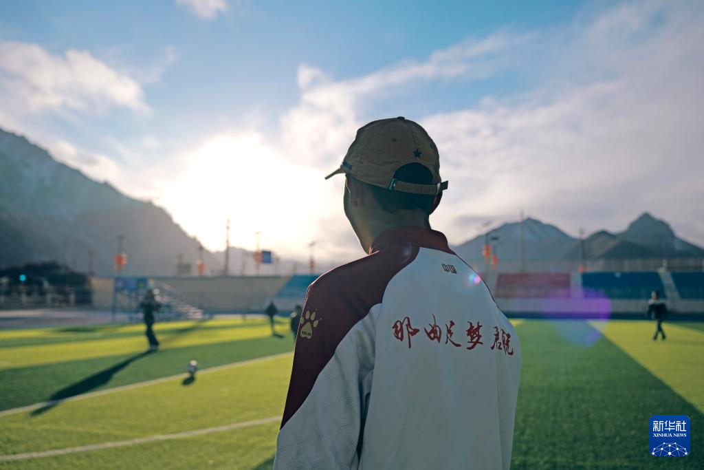頓珠嘉措是嘉黎縣中學(xué)初二的學(xué)生,也是該校足球隊(duì)的成員。嘉黎縣中學(xué)的球場被當(dāng)?shù)厝朔Q為“雪山下的夢幻球場”,球場背靠連綿的雪山,白云飄蕩在藍(lán)天。盡管嘉黎縣海拔高、空氣稀薄,但是當(dāng)?shù)睾⒆觽儗w育運(yùn)動(dòng)的熱愛不減。