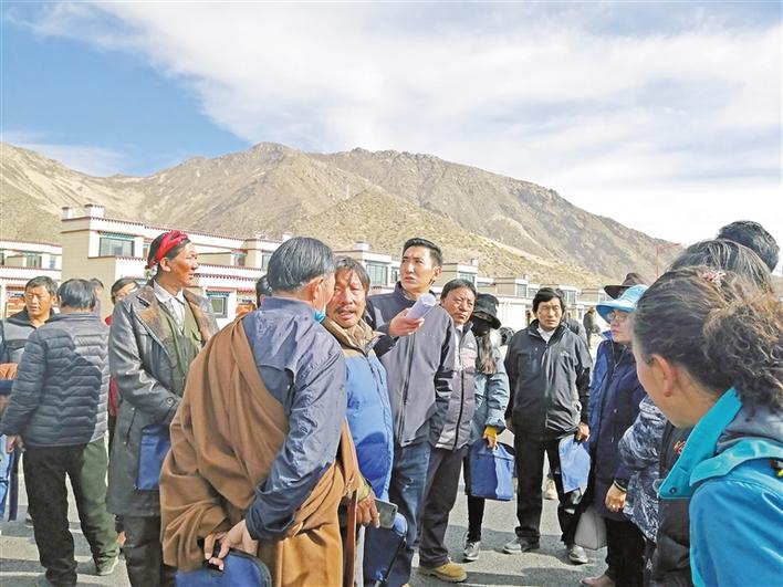 在貢嘎縣森布日高海拔搬遷點(diǎn)參觀學(xué)習(xí)。記者 王菲 攝
