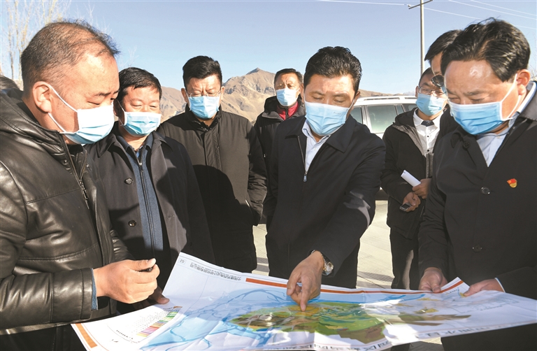 17日上午,市委副書(shū)記、市長(zhǎng)、城關(guān)區(qū)委書(shū)記、市應(yīng)對(duì)新冠肺炎疫情防控工作領(lǐng)導(dǎo)小組組長(zhǎng)果果,在聶當(dāng)工業(yè)園經(jīng)開(kāi)區(qū)西區(qū)規(guī)劃建設(shè)點(diǎn)上,仔細(xì)查看園區(qū)建設(shè)影像圖,詳細(xì)了解園區(qū)規(guī)劃布局。 拉薩融媒記者 巴桑次仁攝