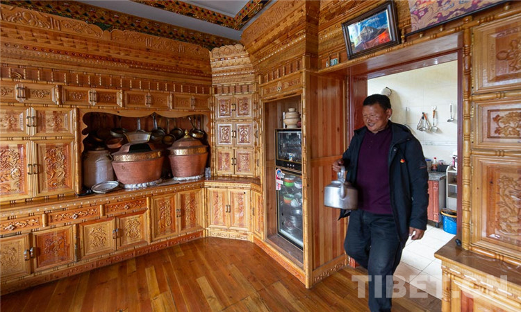 來(lái)到村民仁青家里,仁青正在煤氣灶上燒水?!捌綍r(shí)自己在工地上開裝載機(jī),現(xiàn)在家庭年收入10多萬(wàn)元?!闭勂瓞F(xiàn)在的生活仁青開興地說(shuō),以前只有過(guò)年才可能吃到的大米,現(xiàn)在已經(jīng)是每家每戶的家庭便飯。