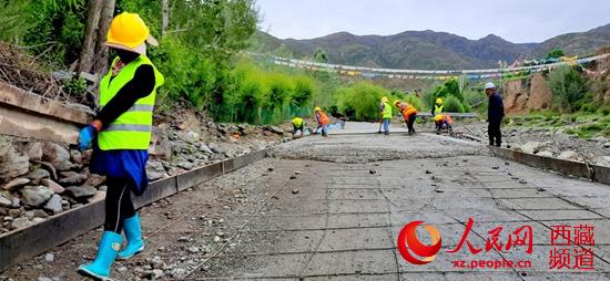 正在緊張施工的拉玉鄉(xiāng)甭唐公路鋪路現(xiàn)場 柴濟東攝