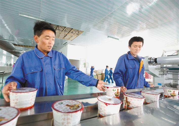 圖為日喀則市白朗縣旺達(dá)食品公司工作人員正在現(xiàn)代化的生產(chǎn)線上作業(yè)。記者 次旺 唐斌 攝