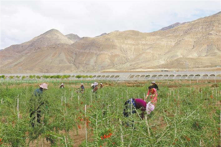西藏日喀則白朗萬(wàn)畝枸杞生態(tài)觀光產(chǎn)業(yè)園實(shí)施以來(lái),通過(guò)土地流轉(zhuǎn)、農(nóng)牧民就業(yè)、機(jī)械租賃、種植技術(shù)培訓(xùn)、產(chǎn)業(yè)分紅等方式,有效支撐了農(nóng)牧民增收和脫貧致富。截至9月底,園區(qū)累計(jì)帶動(dòng)農(nóng)牧民就近就便務(wù)工13萬(wàn)人次,為利益聯(lián)結(jié)的1592名貧困人口兌現(xiàn)產(chǎn)業(yè)分紅193.75萬(wàn)元。據(jù)了解,園區(qū)項(xiàng)目全面建成后,預(yù)計(jì)每年需要用工達(dá)37.5萬(wàn)人次、長(zhǎng)期用工500人。
