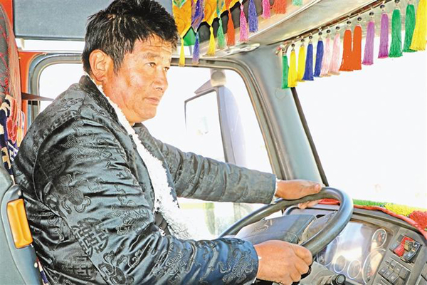 洛松新巴駕駛著自家的四橋車(chē)。