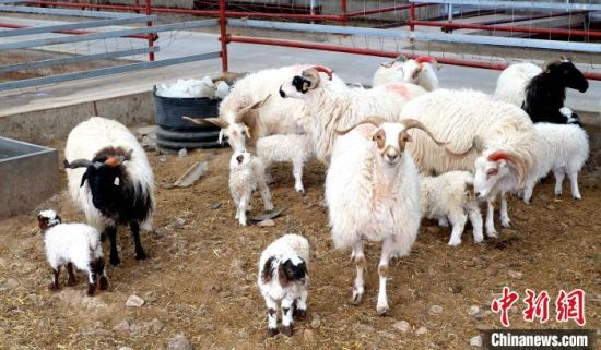 圖為在羊棚里過冬的母羊和羊羔?!±铍h 攝