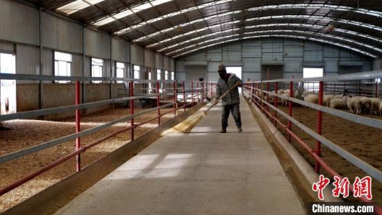 圖為放牧員扎布拉正在打掃羊棚衛(wèi)生?!±铍h 攝