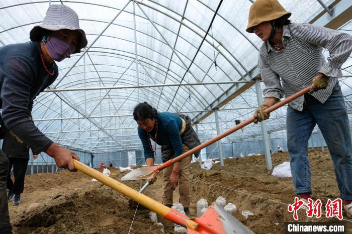 圖為西藏林芝當(dāng)?shù)剞r(nóng)牧民在大棚內(nèi)勞作?!〗w波 攝