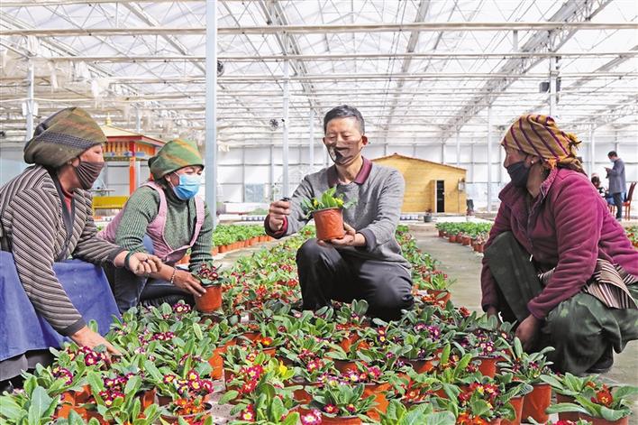 林周縣陽光溫室示范園區(qū)技術(shù)人員在指導村民種植花卉。