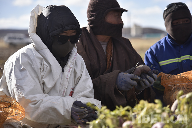 圖為嘎爾德生態(tài)畜牧產(chǎn)業(yè)示范基地里員工正收割芫根 攝影:王媛媛