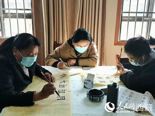 “村里有好多人喜歡書法,恰好城關(guān)區(qū)開展新時(shí)代文明實(shí)踐站·一村一特色文化品牌村(社區(qū))創(chuàng)建活動(dòng),我們就想著往這個(gè)方面打造一下?!辈檀宓谝粫浲恋锹迳=榻B。如今,每逢周六,村里會(huì)邀請拉薩市文聯(lián)、拉薩市書法家協(xié)會(huì)的書法名家,為熱愛書法的村民們傳授技藝。