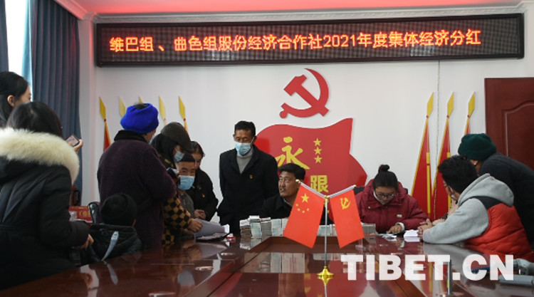 中國西藏網(wǎng)訊 在藏歷新年來臨之際,2月23日,西藏自治區(qū)拉薩市城關區(qū)奪底街道維巴村維巴組、曲色組股份經濟合作社2021年度集體經濟分紅,399戶共發(fā)放530650元分紅資金。