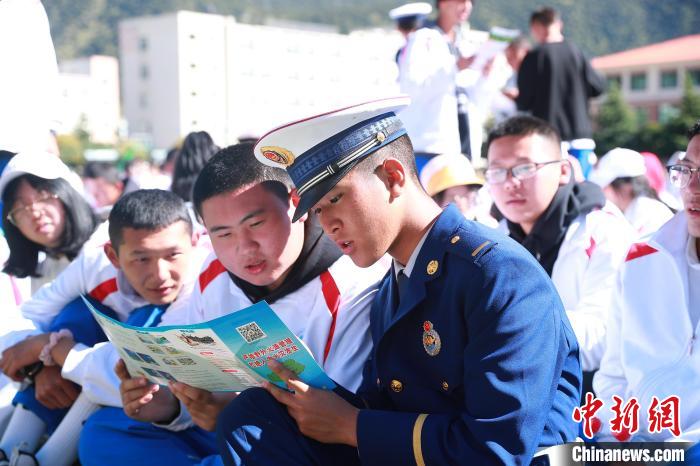圖為林芝市森林消防支隊(duì)走進(jìn)校園宣傳防火知識(shí)。 西繞拉翁 攝