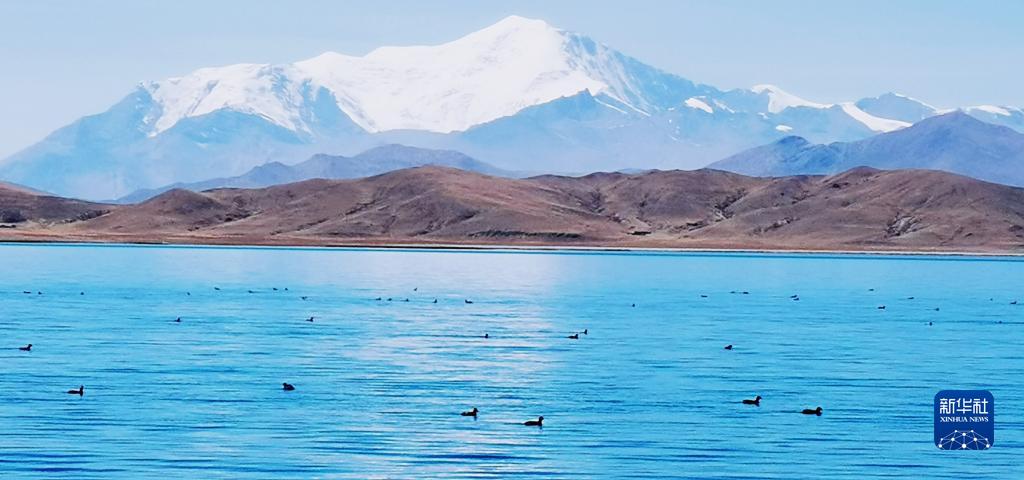 這是在特布拉村拍攝到的羊卓雍錯湖上的鳥群。新華社記者 沈虹冰 攝(手機照片,3月19日攝)
