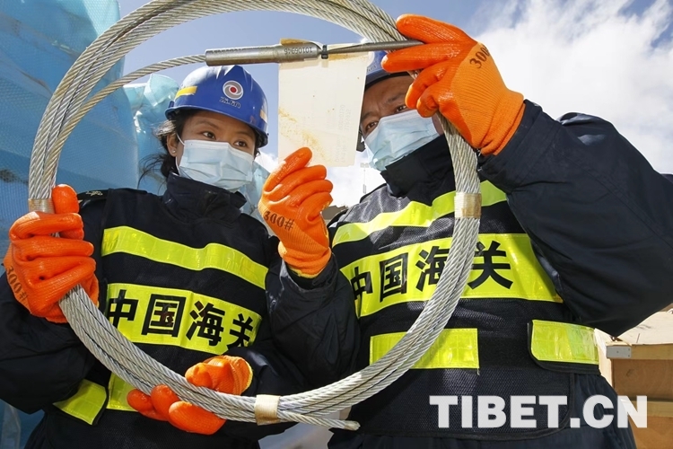 圖為拉薩海關(guān)關(guān)員開展屬地查檢 圖片由拉薩海關(guān)提供
