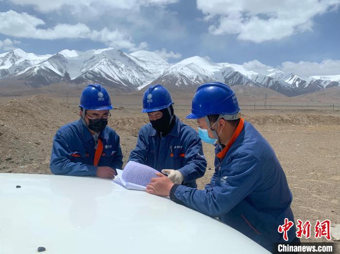 圖為國網(wǎng)青海超高壓公司輸電運檢人員在海拔4700米以上的高原檢修“電力天路”?!W(wǎng)青海超高壓公司供圖