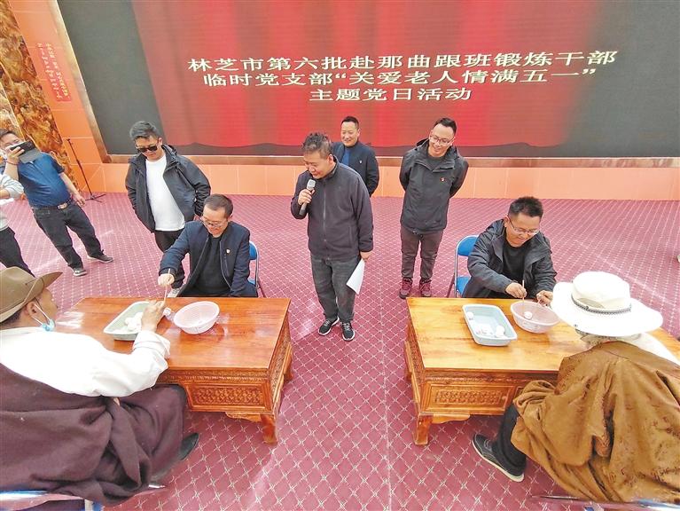 近日,林芝赴那曲跟班鍛煉小組臨時(shí)黨支部組織黨員干部前往色尼區(qū)特困人員集中供養(yǎng)中心開展關(guān)愛老人主題黨日活動(dòng)。活動(dòng)中,黨員干部為老人們發(fā)放慰問品、表演文藝節(jié)目,同老人們拉家常,幫老人們打掃衛(wèi)生。此次活動(dòng)既是一次志愿活動(dòng),也是一次黨性鍛煉,充分展現(xiàn)了黨員干部踐行為民服務(wù)、奮發(fā)有為的時(shí)代風(fēng)采,增進(jìn)了干群關(guān)系。