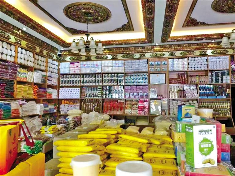圖為江孜縣城商戶出售的青稞食品。 (圖文均由郵儲(chǔ)銀行西藏分行提供)