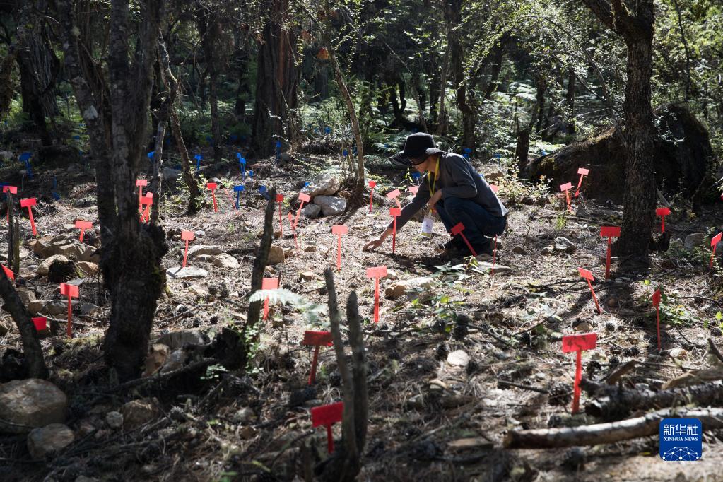 在波密縣扎木鎮(zhèn)東若村林地,工作人員在管護林下撫育的藏天麻。新華社記者 金立旺 攝