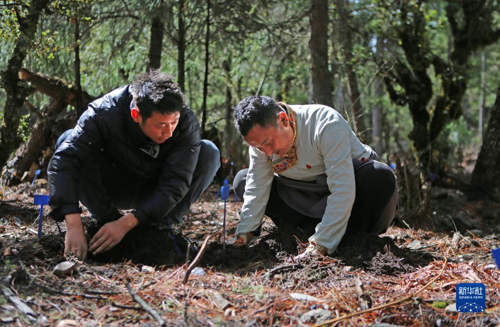 3月的波密,細雨綿綿,微微吹拂的春風中夾雜著青草與泥土的芳香,巴桑頓珠行走在茂密的樹林間,不時蹲下身子查看天麻種苗的生長情況。