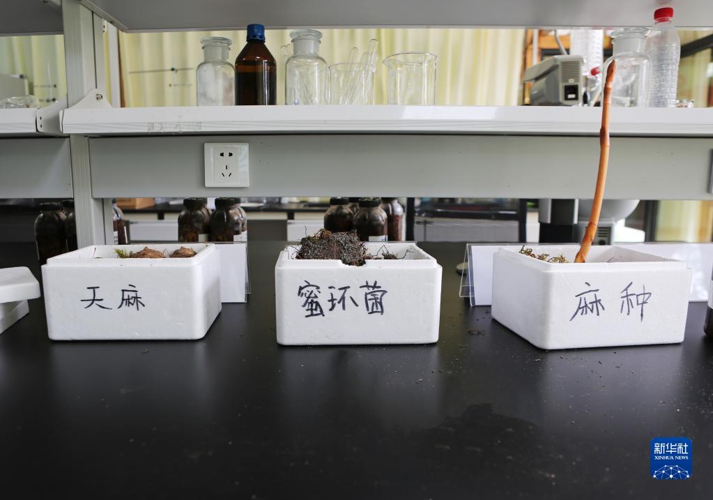 這是天麻種植實驗室內(nèi)培養(yǎng)的菌類及麻種(3月24日攝)。新華社記者邵澤東 攝