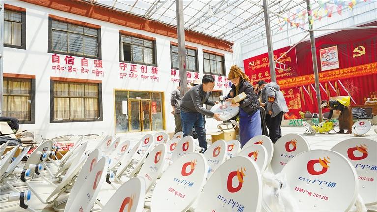 為了拓寬農(nóng)牧民群眾的信息接收渠道,4月18日起,拉薩市墨竹工卡縣委宣傳部、縣廣播電視臺組織技術人員深入門巴鄉(xiāng)波朗村和貼朗村,為當?shù)?04戶村民免費安裝新一代戶戶通機頂盒,架起了農(nóng)牧民與外界溝通的橋梁,幫助農(nóng)牧民群眾更快了解國家政策,進一步提升了農(nóng)牧民群眾的幸福感。
