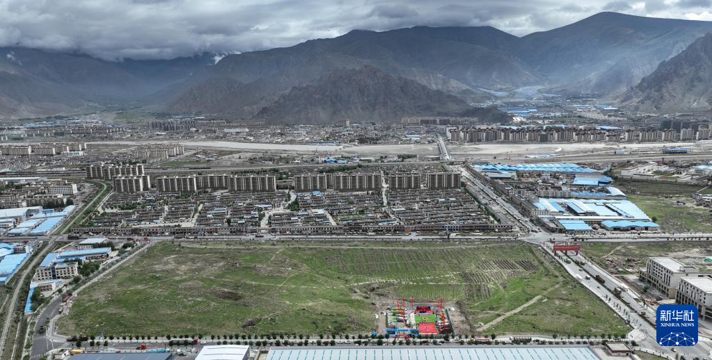 7月5日拍攝的拉薩市年產(chǎn)30萬(wàn)噸啤酒建設(shè)項(xiàng)目奠基儀式現(xiàn)場(chǎng)(無(wú)人機(jī)照片)。新華社記者 晉美多吉 攝