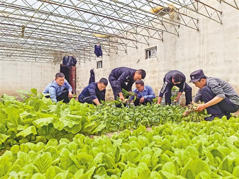 這是薩瑪達(dá)邊境派出所民警在大棚里采摘蔬菜。記者 王莉 攝