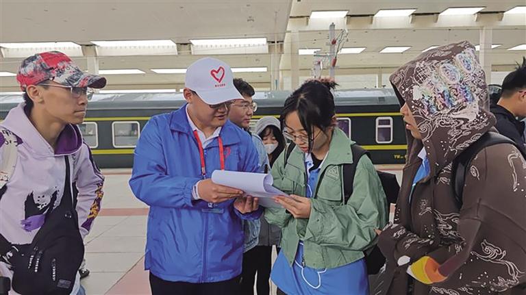 “到西部去、到基層去、到祖國(guó)和人民最需要的地方去?!?月24日,2023屆大學(xué)生西部計(jì)劃西藏專項(xiàng)志愿者陸續(xù)抵藏報(bào)到。現(xiàn)場(chǎng),共青團(tuán)西藏自治區(qū)委員會(huì)組織了前幾屆志愿者在火車站接站?!拔沂菑暮幽线^來(lái)做志愿者的,在西藏已經(jīng)2年了,一直在自治區(qū)經(jīng)信廳上班。今天是過來(lái)接學(xué)弟學(xué)妹們的,幫助他們登記報(bào)到?!表n義凡說。中午11點(diǎn)左右,火車進(jìn)站,志愿者們陸續(xù)前來(lái)報(bào)到?!斑@是我第一次來(lái)西藏,還是以志愿者的身份,我會(huì)好好工作,為西藏的發(fā)展作出自己的貢獻(xiàn)?!眮?lái)自天津的田克正說。