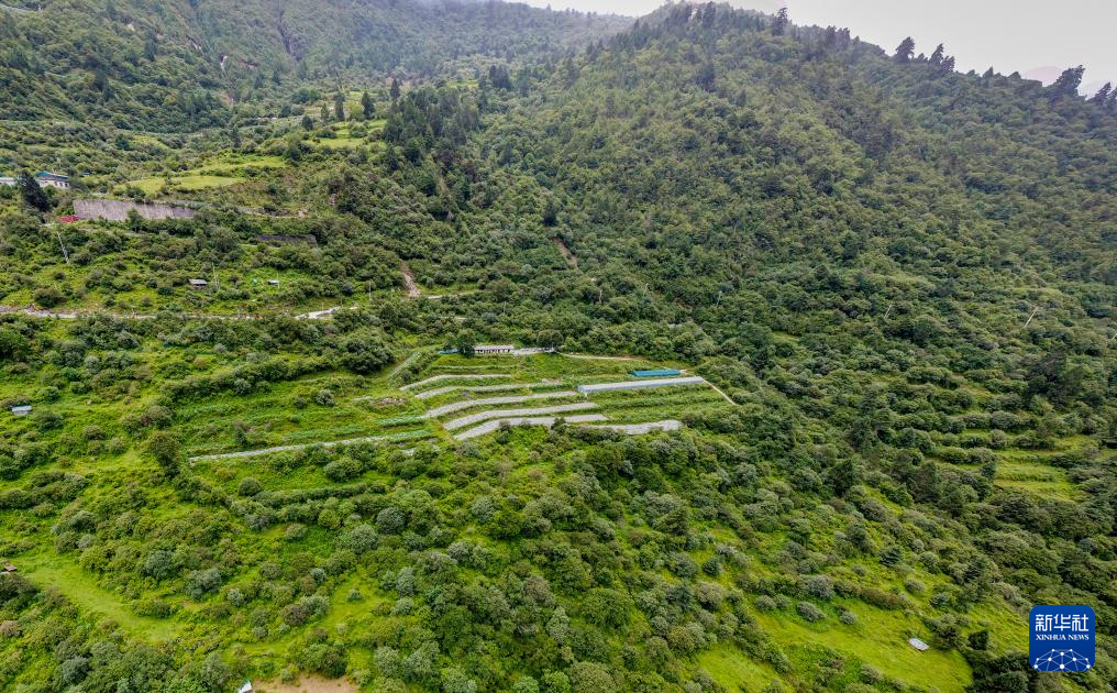 這是錯(cuò)那市貢日門巴民族鄉(xiāng)斯木村的莓茶種植試驗(yàn)田(無(wú)人機(jī)照片,7月28日攝)。新華社記者 旦增尼瑪曲珠 攝
