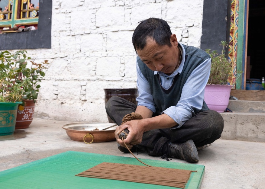 格桑次仁家里世代都會制作藏香,他和哥哥自小跟隨父親學習藏香制作技藝,哥哥次仁多吉如今也是這門技藝的國家級代表性傳承人?!斑@幾年,在政府的扶持下,家里購置了藏香制作輔助機器,在保證藏香原料品質不變的基礎上,得以實現(xiàn)量產。同時,我們開拓線上銷售渠道,收入也隨之增加了?!备裆4稳收f,家里不僅翻新了房屋,還添置了小貨車、私家車,日子過得紅紅火火。
