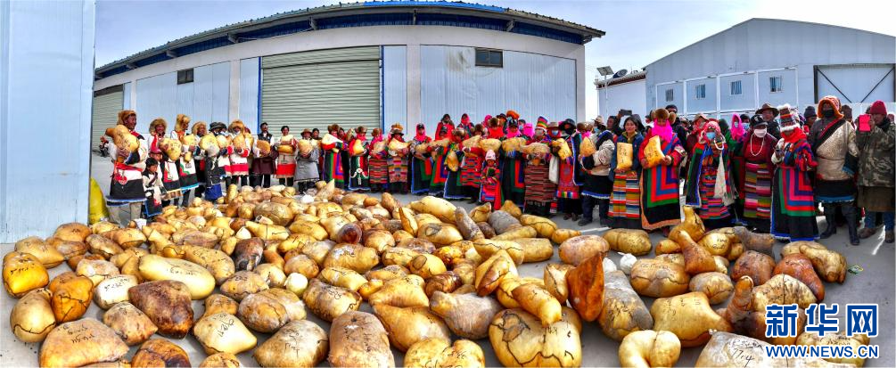 合作社為社員發(fā)放畜產品(11月28日攝)。新華社發(fā)(索朗仁青 攝)