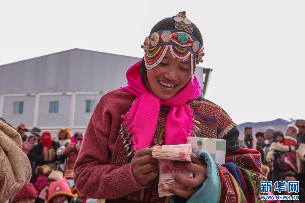合作社社員領到現(xiàn)金分紅(11月28日攝)。新華社發(fā)(索朗仁青 攝)