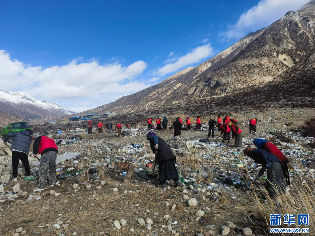 在西藏昌都市八宿縣然烏鎮(zhèn)然那村,群眾們正在參與環(huán)境衛(wèi)生整治活動(dòng)(12月6日攝)。新華社發(fā)(土登念扎 攝)