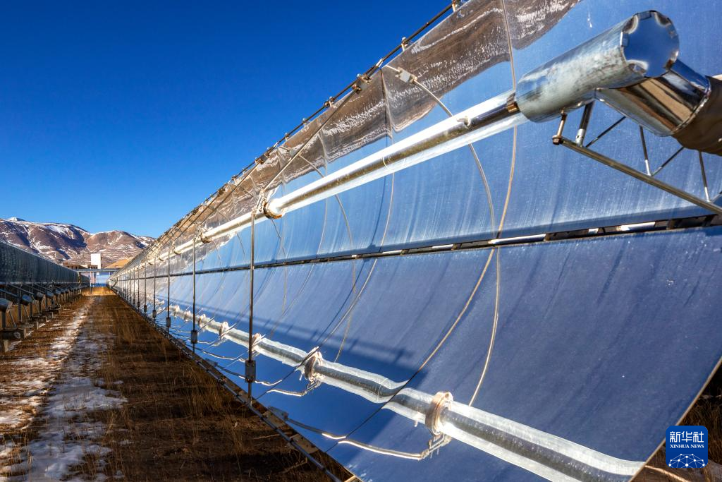 這是申扎縣城集中供暖項(xiàng)目太陽能集熱場(chǎng)局部(1月6日攝)。新華社記者 曹檳 攝