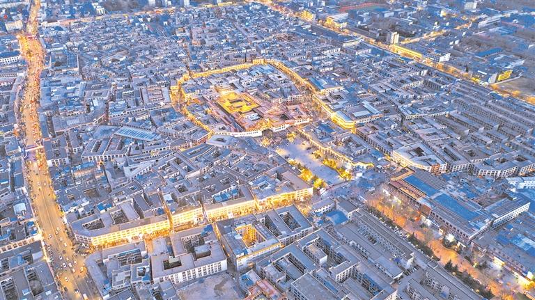 八廓街夜景。記者 陳博文 平措次仁 攝