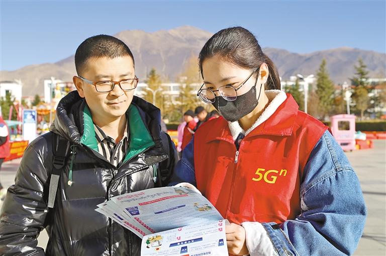圖為電信、移動(dòng)、聯(lián)通山南分公司工作人員在山南市體育場(chǎng)開展“文明用網(wǎng) 安全用網(wǎng)”專題宣傳教育活動(dòng)。 記者 武沛濤 攝