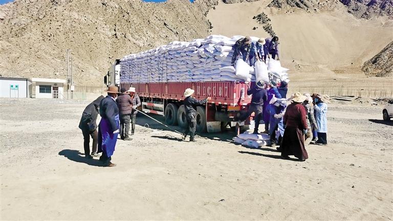 圖為曲水縣才納鄉(xiāng)發(fā)放有機(jī)肥。本報記者 格桑倫珠 攝
