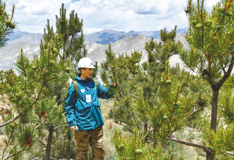 工程的綠意還延伸至拉薩貢嘎機場周邊的山體,山南市林草局林業(yè)和草原有害生物防治站檢疫員次仁羅布在造林現(xiàn)場進行苗木復檢工作,復檢結果顯示這批苗木的成活率達到92%?!斑@里是走出貢嘎機場的第一站,旅客們可以直接看到我們種下的綠色,很有意義?!贝稳柿_布說。