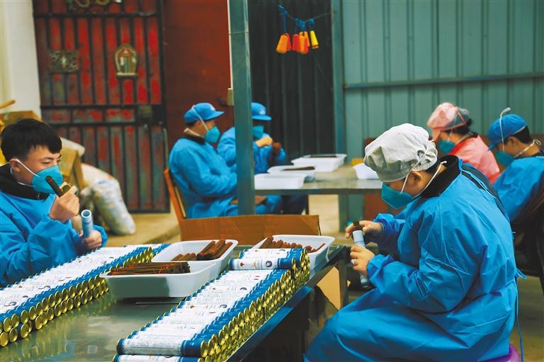 色扎鄉(xiāng)索巴村嗒哪藏香加工廠廠房?jī)?nèi),工人在制作藏香。記者 平措郎加 攝