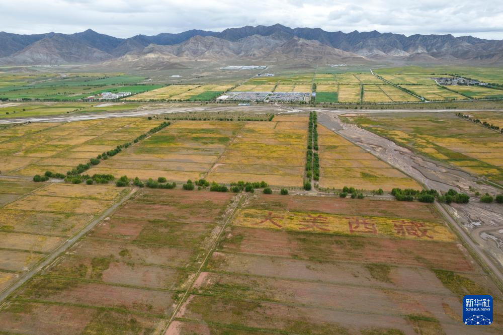 這是在西藏日喀則市薩迦縣扯休鄉(xiāng)拍攝的高原藜麥種植基地(無人機照片,9月4日攝)。新華社記者 孫瑞博 攝