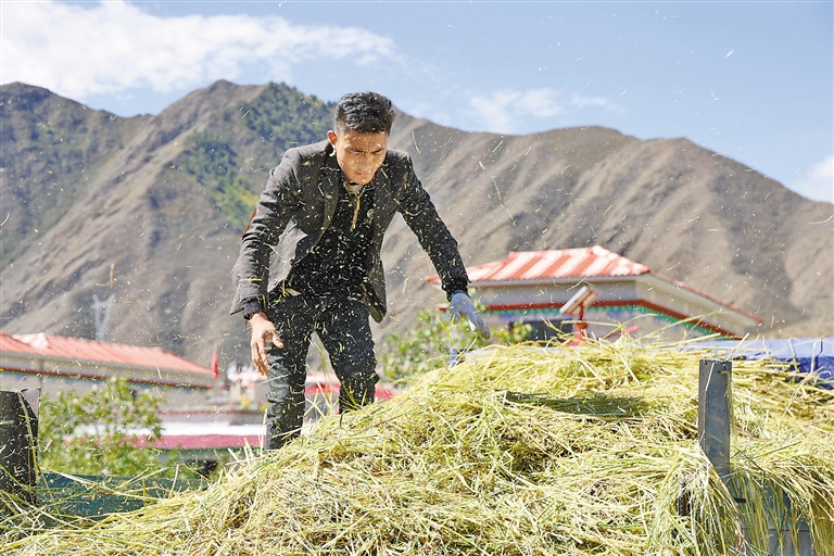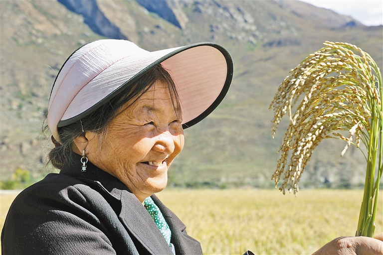 水稻豐收,村民喜笑顏開(kāi)。記者 卓瑪七林 攝