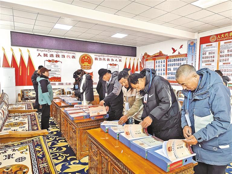 圖為考察人員在錯那學(xué)習(xí)當(dāng)?shù)剜l(xiāng)村振興、基層治理、民族團結(jié)和壯大村集體經(jīng)濟等方面的工作經(jīng)驗。記者 丹增平措 攝