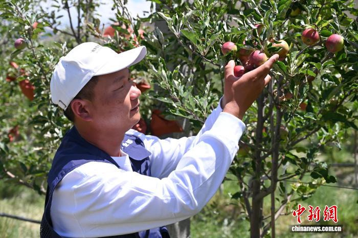 蘋(píng)果種植不僅“鎖”住了風(fēng)沙,更帶來(lái)了“甜日子”。次仁卓嘎和眾多村民一樣,在基地就近務(wù)工獲得穩(wěn)定收入。李世銀介紹,僅附近的朗塞嶺村,幾乎每戶都有人在基地務(wù)工,每戶年增收約5萬(wàn)元(人民幣,下同)至6萬(wàn)元。該基地于2020年建設(shè),現(xiàn)種植已達(dá)8200畝。2023年首銷4000畝蘋(píng)果,實(shí)現(xiàn)銷售額276萬(wàn)元;2024年銷售額躍升至385萬(wàn)元。產(chǎn)品不僅在西藏區(qū)內(nèi)及國(guó)內(nèi)其他省市銷售,去年還進(jìn)入尼泊爾市場(chǎng)。“銷路完全不用愁。”李世銀信心滿滿。